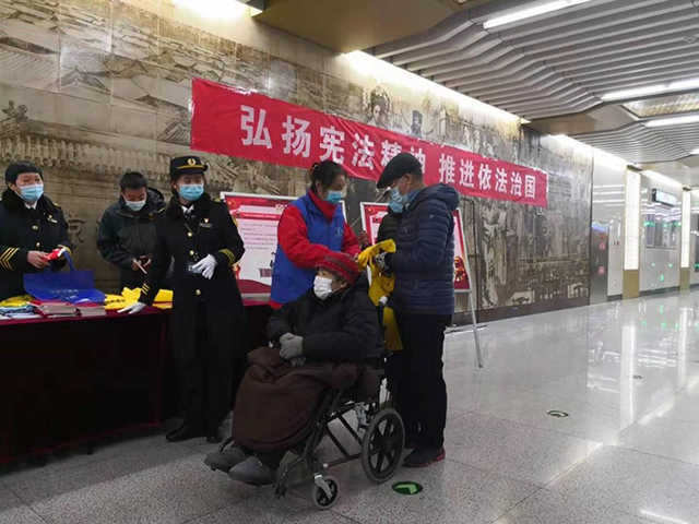 二是积极开展线下活动,12月4日上午,西城区法学会联合西城区司法局、北京地铁在车公庄和虎坊桥地铁站联合开展“宪法进地铁”活动。活动现场,通过设置展板、发放资料等形式加强宪法宣传,不断提升群众法治意识,促进法治信仰内化成公民法律意识和行动自觉。
