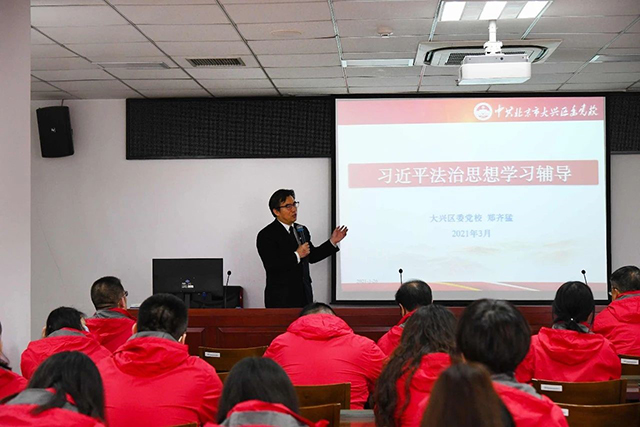 区委政法委、区法学会邀请区委党校郑齐猛教授围绕习近平法治思想作专题辅导讲座。郑齐猛教授围绕“习近平法治思想背景和意义、习近平法治思想主要内容、如何贯彻习近平法治思想”三方面作专题辅导报告,介绍了习近平法治思想形成的背景,系统地阐释了习近平新时代中国特色社会主义思想的核心内容和重大意义,并结合我区政法实际工作对今后如何贯彻落实习近平法治思想给出参考建议。 通过此次活动,进一步引导党员干部深入学习习近平法治思想,自觉运用法治思维和法治方式推动工作,积极做习近平法治思想的坚定信仰者、积极传播者、模范实践者,为平安大兴建设和市域社会治理工作提供强有力的法治保障。