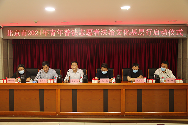 2021年5月19日,北京市法学会、市司法局、团市委在北京市西城区新街口街道举办2021年北京市青年普法志愿者法治文化基层行启动仪式暨西城区“我为群众办实事”普法直通车民法典进社区活动。市法学会党组书记、专职副会长萧有茂,市法学会党组成员、专职副会长兼秘书长雷建权,市法学会二级巡视员刘朝茂,西城区副区长兼新街口街道工委书记王波,市司法局普法与依法治理处副处长马凯,团市委权益部副部长胡蓉洁,西城区委政法委副书记、区法学会常务副会长钟显林,普法志愿者代表和社区居民代表约100人参加了本次活动。
