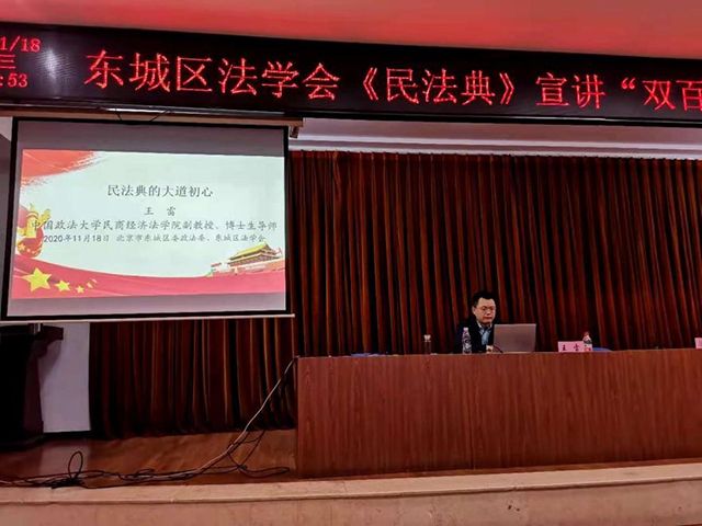 11月18日上午,东城区法学会在安定门街道政务服务中心二层会议室举办东城区法学会《民法典》宣讲“双百”专场报告会暨法治文化基层行活动,区委政法委领导、街道领导、各部门代表、社区代表和居民代表80余人参加活动。
