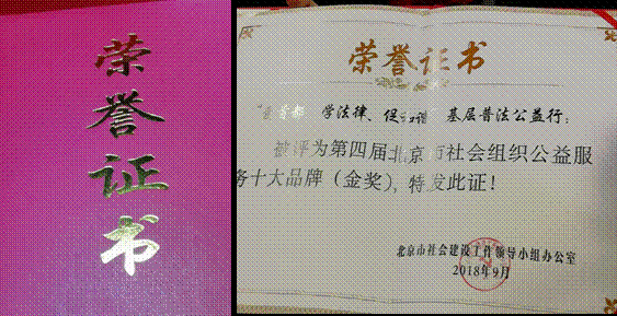 2018年9月,北京市法学会在第四届北京市社会组织公益服务品牌评选活动中又创佳绩。在本次评选活动中,北京市法学会系统共有6个品牌获奖,获1金、1银、3铜、1提名的好成绩,“‘爱首都、学法律、促和谐’基层普法公益行”获得金奖,被评为北京市社会组织十大公益服务品牌,是继“法学法律专家基层公益行”、“法治建设公益讲堂”后北京市法学会第三个获得北京市社会组织公益服务品牌金奖的项目;“参与信访‘三百’服务项目”获得银奖;“彩虹之爱”、“中小企业劳动关系问诊行动”、“首都食安法治行动”3个品牌获得铜奖;“涉法涉诉信访终结案件跟踪服务”项目获得提名奖。