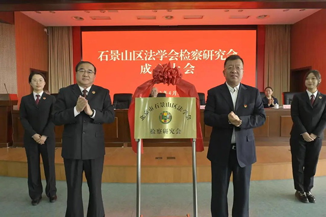 2023年4月27日,石景山区法学会检察研究会成立大会在区检察院举行。区委区政府相关会员单位和“益心为公” 志愿者代表共120多人参加会议。 市法学会一级巡视员贾沫微,区委副书记、政法委书记、区法学会会长刘海涛,区检察院党组书记、检察长张京文出席会议并讲话。区检察院党组副书记、副检察长陈速主持会议。