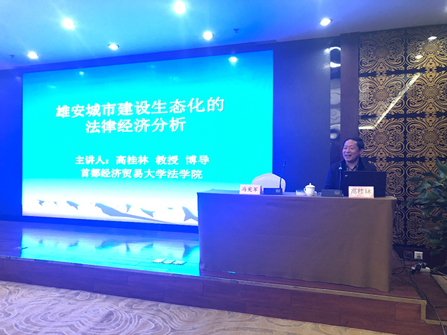 本次研讨会的主题为坚持习近平新时代中国特色社会主义思想,推进京津冀协同发展与创新。首都经贸大学高桂林教授,天津大学法学院院长、中国绿色发展研究院执行院长孙佑海教授以及河北省委党校副校长李胜茹教授分别以《雄安城市建设生态化的法律经济分析》、《以习近平生态文明思想为指导,促进京津冀生态文明建设的制度体系研究》、《京津冀协同发展和雄安新区规划建设的主要进展及需要关注的问题》为题做了主旨报告。